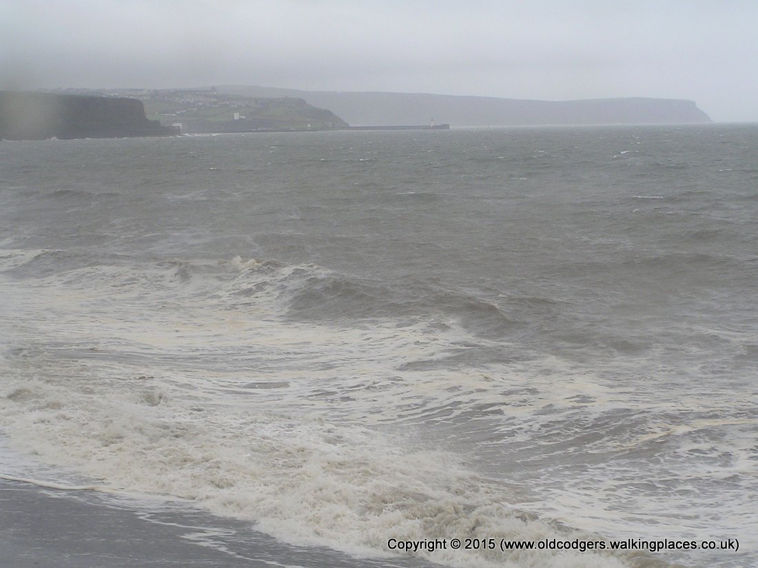 On Monday morning we met David and Robyn at Euston and caught a train heading for St Bees. We changed trains at Preston in drizzling rain to a train that went as far as Lancaster before breaking down. The replacement train took us through driving rain as far as Carlisle where we changed into a little 3 carriage train for St Bees. The heavy rain continued, and the sight of St Bees Head from the train through the rain and mist across a churning, grey Irish Sea made us wonder what it would be like walking over the headland next day.