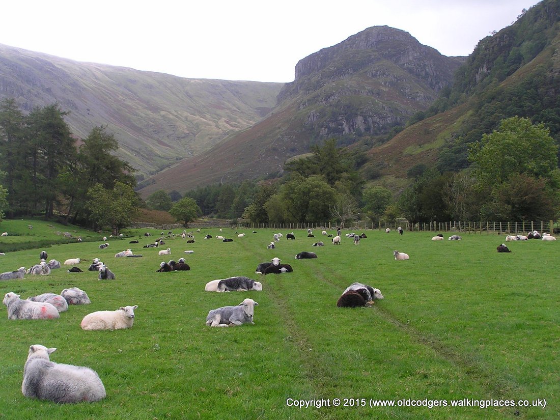 'From Stonethwaite, Greenup Gill winds around Eagle Crag'