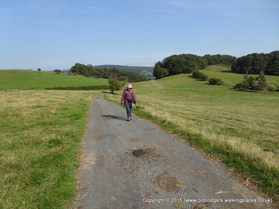 It was 9.45 when we walked past the 'Cleveland Way' sign pointing out of town. It was a pleasant start to the day as we walked beside hedgerows and walls with lots of birds singing and a hazy view back to the castle. The mist soon cleared leaving a bright blue sky. It was getting hot by the time we passed Griff Lodge, so the shade of Quarry Bank Wood was a welcome relief. Having visited Rievaulx Abbey previously, we decided not to detour for a closer look at the magnificent ruin. We continued along the road, then along forestry tracks past the ponds on Noodle Hill where large flocks of ducks congregated. The footbridge over the stream mentioned in the guidebook has been replaced by stepping stones.