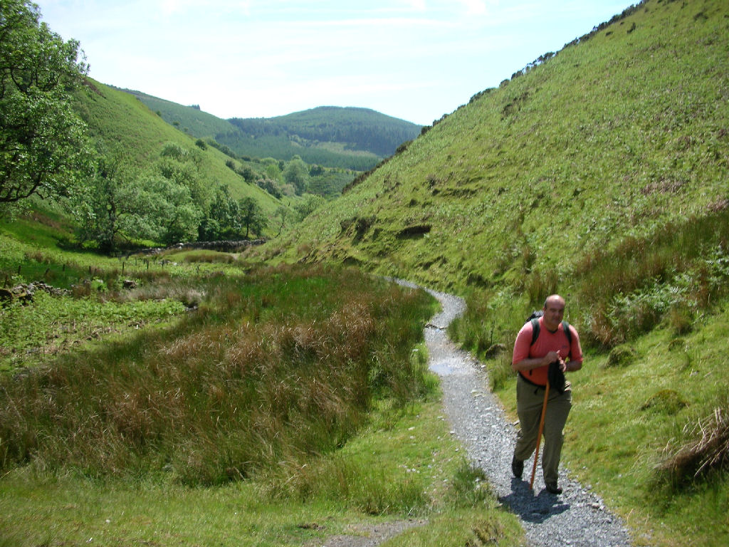 Monday 12 June - St. Bees - Ennerdale Bridge I had a restless night I recollect waking up at different times and seeing the clock pass 4, 5 6 & 7am but I felt refreshed and ready for the off. We had booked breakfast at 8am and set our alarm for 7.15am. Showered, shaved, final checking of rucksacks and bags for onward transfer – destination labels attached and we went down for breakfast. Malc & I had a full English breakfast after fruit juice and starters i.e. porridge and grapefruit followed by toast. This was a hearty breakfast that set us up for the day. During breakfast we saw the other 8 C2C walkers staying at Stonehouse Farm. They were made up of two separate groups of 4. The first group of 4 were all male and they were intending to walk to Reeth this year and complete the walk the following year. They were Andy & Chris (brothers), Jim and Kit. More about these chaps later. The other group of 4 were two American couples who we briefly said good morning to as they came down to breakfast later than us. We did not see them to talk to again until breakfast at Oak Lodge, Grasmere on Thursday morning 15 June. We set off down to the beach area at about 8.50am. It had been raining heavily until about 8.30am but it had stopped now and although overcast I sensed it would dry up – it did and albeit a little breezy it was a perfect walking day. Prior to leaving home I had downloaded routes containing waypoints for each of the 16 walking days. I used a maximum of 20 waypoints per day and on some days these included the locations of geocaches. On this first day I only had one to find near St Bees Lighthouse. On the way to the beach we saw a young man and woman leaving Tomlin Guest House also apparently on the way to the beach. We had seen them in the Queens Hotel the previous evening and identified them as potential C2C walkers. Malc & I took a few photographs in the area of the beach including the brick wall minus the start sign and of me getting my feet wet in the Irish sea and selecting a pebble from the beach. 9.20am and we were off up to the South Head following the young lady from the male/female partnership we had seen earlier. We caught up with her at South Head and learned she was from Australia doing some of the C2C walk with her ‘friend’, an Englishman working in Australia. She explained that he had gone a different route and was to meet here past the lighthouse. As we looked back towards the beach there were no signs of any other walkers – we took a few photographs and marched onward and upward towards Fleswick Bay and then the Lighthouse. We were in good spirits and I decided to introduce Malc to a bit of a challenge. For many years as part of the Dales Team Building Exercises I had given the participating teams a ‘theme of the day’ in which they had to name, from things they actually saw along the route, an item connected to a theme. The theme I chose for Malc & I was that from things seen during the walk we had to give the name, in turn, of an England footballer past and present. Things were rolling along very well for about a mile when names like Nobby Stiles, Gordon Banks, Bobby Moore, Ron Flowers and Emlyn Hughes rolled off the tongue. Malc then either cheated or used his vast superior knowledge of England footballers to great effect (I think the latter applied) as he said Albert Legge and others from the pre second world war era. I surrendered and Malc was the winner. A little further along the route we changed the theme to Pop stars or groups and Malc threw the trowel in when I said ‘A Flock of Seagulls’ (genuine Malc honest). We made good progress and proceeded around Fleswick Bay and onto the North Head where I bagged the ‘Black Guillemot Lighthouse Jackpot’ cache. I got a great picture of the St Bees lighthouse before we moved on. As we approached Saltom Bay the cliff top path showed what I believe to be dangerous signs of erosion i.e. it was dangerous to walk on in several places and it surely is only a matter of time before the path here is diverted inland a little. We then saw two of the four all male group, Chris and Jim, we had seen at breakfast. They were looking back towards St Bees asking if we had seen their other two colleagues – we had not and were quite surprised to see them in front of us. We had a chat about our respective schedules and plans before Malc & I proceeded and then turned inland towards Sandwith and beyond. It was generally easy walking along the lanes and paths all the way to Cleator via Moor Row. We walked down Wainwright's Passage near the cricket field on the way in to Cleator where we had considered having lunch. As we passed through the village and turned right opposite Farrons shop we were looking for a bench to sit down on to have lunch but never saw one. I went into the shop and bought us a couple of bottles of Lucozade to have with our lunch. I was served by a lovely lady who was extremely chatty and asked me to sign the C2C visitors book in the shop and I duly obliged with my name and ‘aka Journeyman’. We thought it may be a bad idea to have lunch before the climb up Dent Hill so we pushed on quickly through the forest up to the large cairn on Dent Hill where we sat down and admired the views as we ate a well deserved packed lunch. We sheltered from the westerly wind behind the cairn and noted the amount of litter left hidden under rocks within the cairn – what a disgrace – the people responsible should be ashamed of themselves. We set off across the boggy plateau and descended steeply down to the two water tanks where slight confusion arose. The finger board for the Coast to Coast pointed down hill to the right but the Stedman guidebook indicated a path to the left which we actually took. It was a steep descent as indicated by Stedman as Malc found out as he slid a few yards down on his side. We quickly found the picturesque Nannycatch Gate and beck which was in warm sunshine. This was an idyllic little v