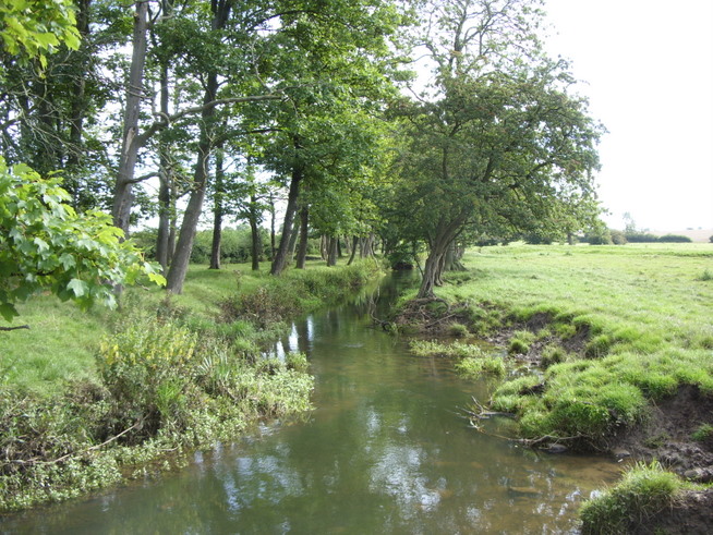 I was relieved when just before seven o’ clock Darryl called across to give me the good news about his ankles. He was prepared to give the day’s walk a go. I don’t think he was keen on spending another night at the caravan park either, so we were both pretty relieved. We were ready to leave by 8, but had to wait until 8.30 for Reception to open so that we could return our bathroom keys and get our £5 deposits back. While we waited we chatted to a guy from Newcastle who’d been intending to take his family on holiday to Spain but had to cancel it because his son had broken his arm falling off a swing at the caravan park (is this place cursed?). We were off at 8.30 exactly and walked along the main road to the village of Brompton-on-swale. We were hoping to find a cafe where we could buy a coffee, but there didn’t seem to be one so we pressed on to a lane that ran alongside a river and as we trekked across a field we saw a woman out walking her five dogs. It reminded me how many more pets some people have living out in the country compared to those living in cities. Five dogs seemed ludicrous, but out in the country there was plenty of space for them to run around especially if they lived on a farm. Plenty of hikers for them to bark at too. When we reached the end of the field and said good morning to the woman, she replied with a smile then called out: