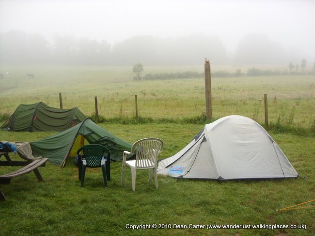 Leaving the pub just after seven we walked briskly back to the tents and dived in before the rain really got into its stride. The two or three Scottish guys camped nearby were perhaps put off by the rain and stayed in their tents all night. This probably stopped them from making a noise outside, but it certainly didn’t stop them making a noise inside. We were kept awake for ages by their unique rendition of ‘Don’t Worry Be Happy.’ I couldn’t actually hear the improvised lyrics of the thirty or so verses that punctuated the rainy night, but this was probably a blessing. At some point (late) in the night they finally got bored and gave us some peace. At least this night was warmer than the previous two.