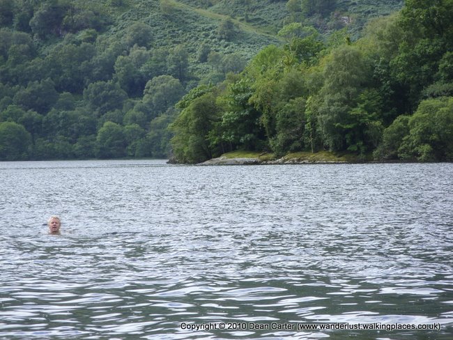 Despite my attempts to dissuade him and convince him it was further away than he thought, he stripped down to his shorts and waded in announcing unnecessarily that the water was cold. To be fair he did make it a fair way across but had to turn back after a while because the lack of goggles was making it hard on his eyes, and there were boats on the Loch that could prove hazardous if they headed his way.
